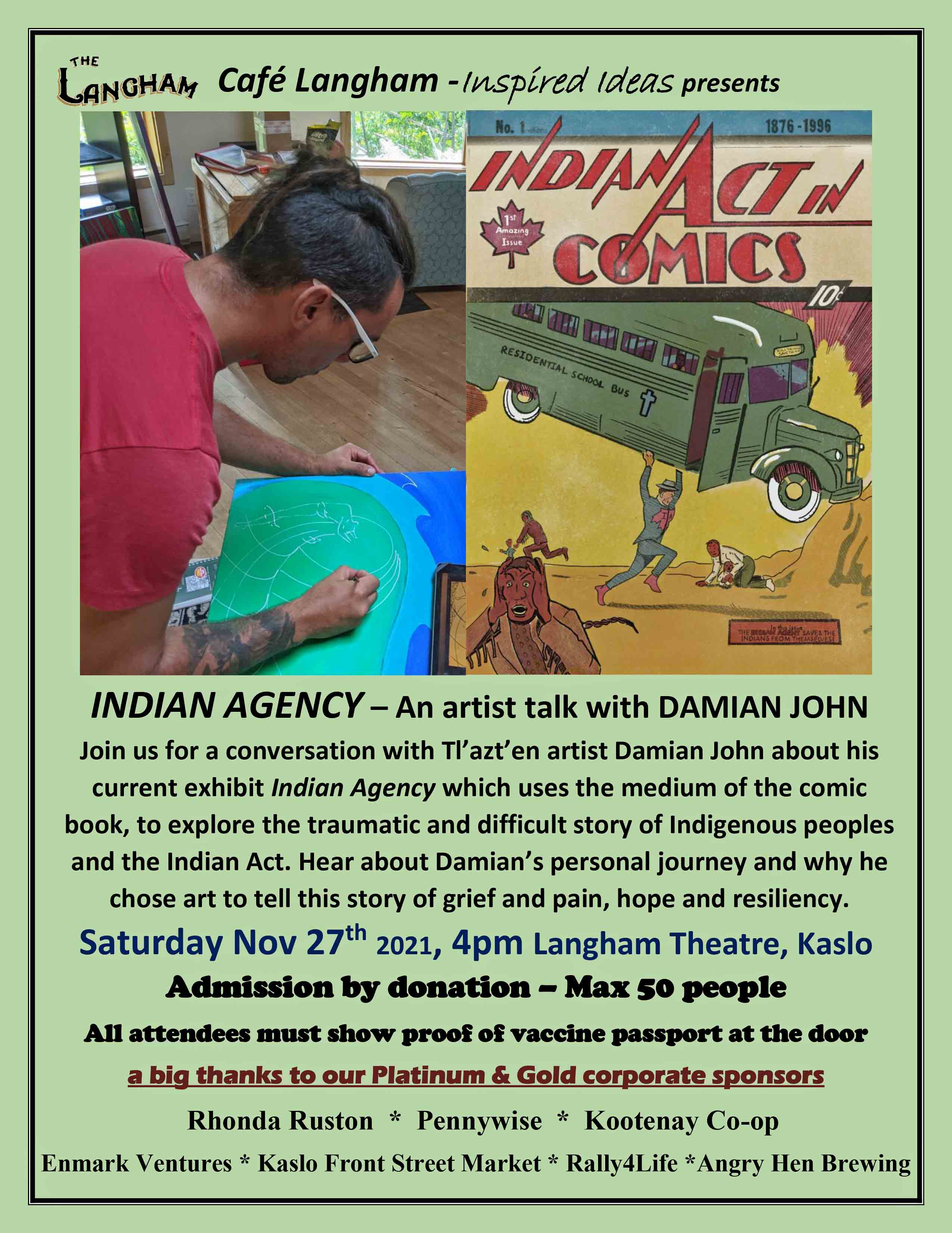 Cafe Langham – Inspired Ideas – returns to the Langham Theatre with an enlightening and educational conversation with Tl’azt’en artist Damian John!